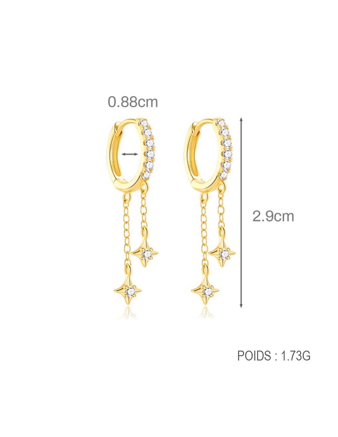 Boucles d'oreilles argent 925 doré à l'or fin - 4 STARS