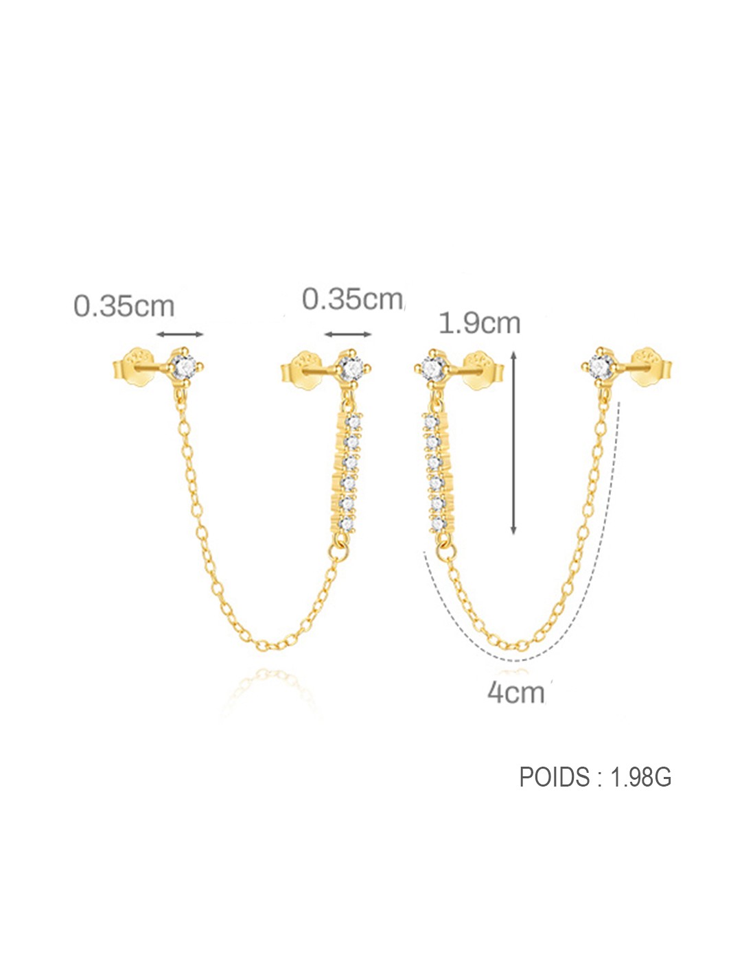 Ces boucles d’oreilles en argent 925/000 doré à l'or fin séduisent par leur design délicat et contemporain. Deux puces reliées par une fine chaînette, apportant mouvement et légèreté à l’ensemble.