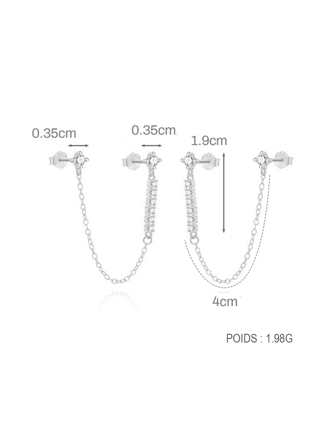 Ces boucles d’oreilles en argent 925/000 séduisent par leur design délicat et contemporain. Deux puces reliées par une fine chaînette, apportant mouvement et légèreté à l’ensemble.
