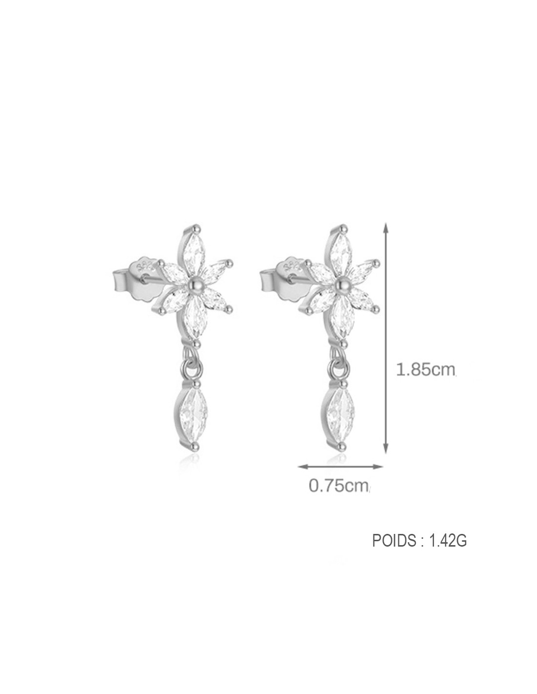Ces boucles d’oreilles en argent 925/000 séduisent par leur design délicat et contemporain. Deux puces à motif fleurs avec une pampille en forme de pétale.