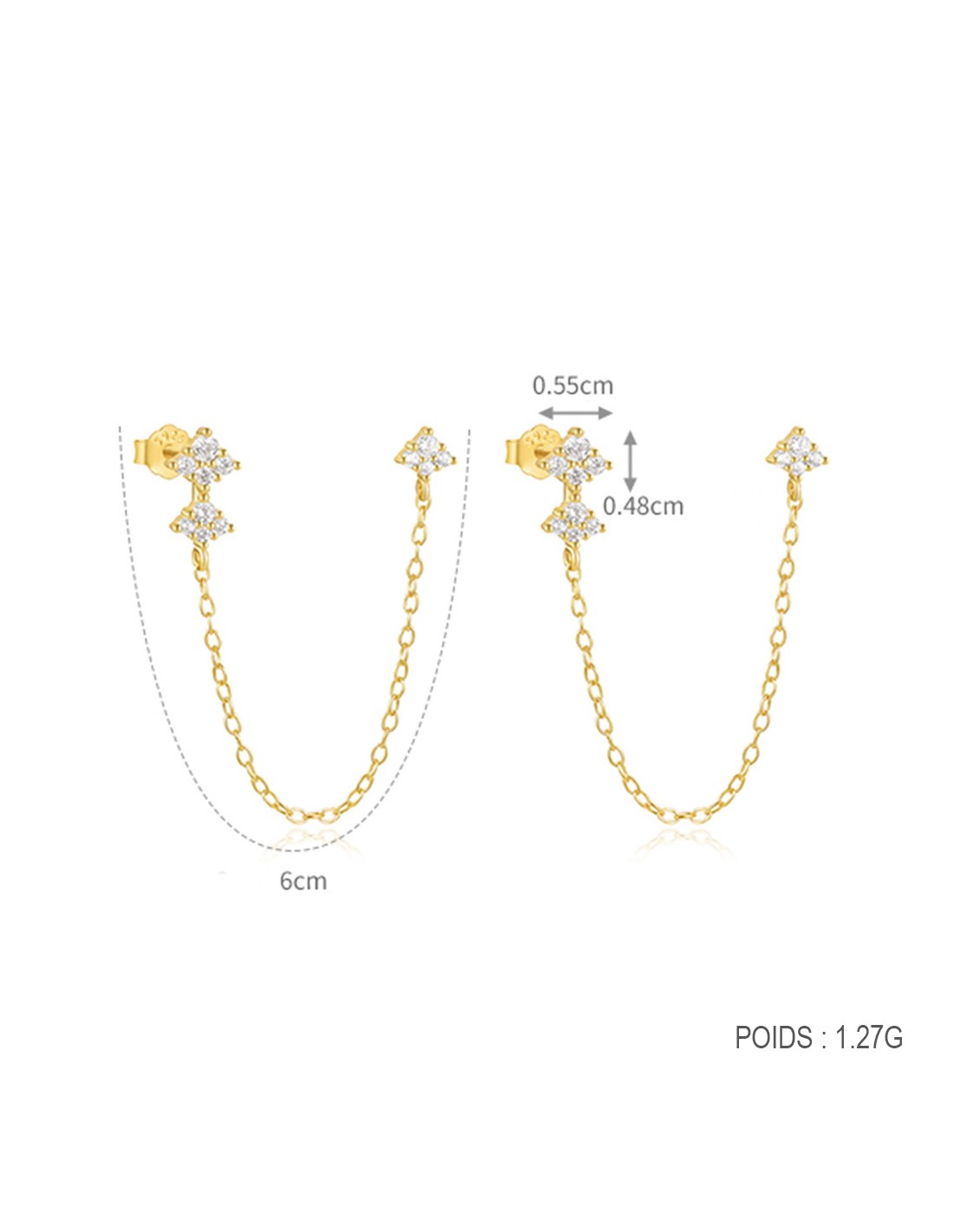 Ces boucles d’oreilles en argent 925/000 doré à l'or fin séduisent par leur design délicat et contemporain. Deux puces avec zirconiums, nécessite que la personne doit être percée deux fois sur la même oreille pour pouvoir le porter.