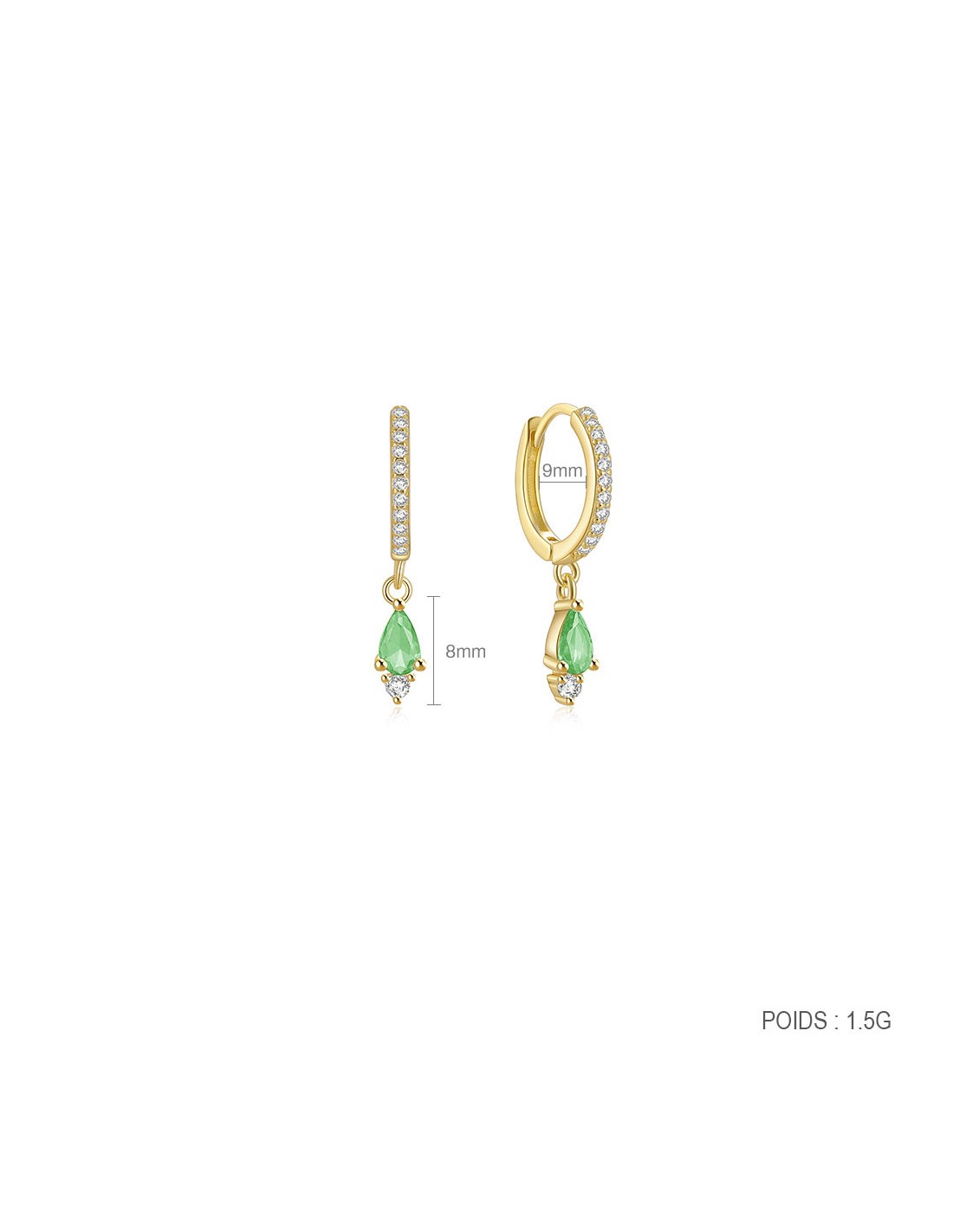 Boucles d'oreilles argent 925 doré à l'or fin - GOUTTE VERTE