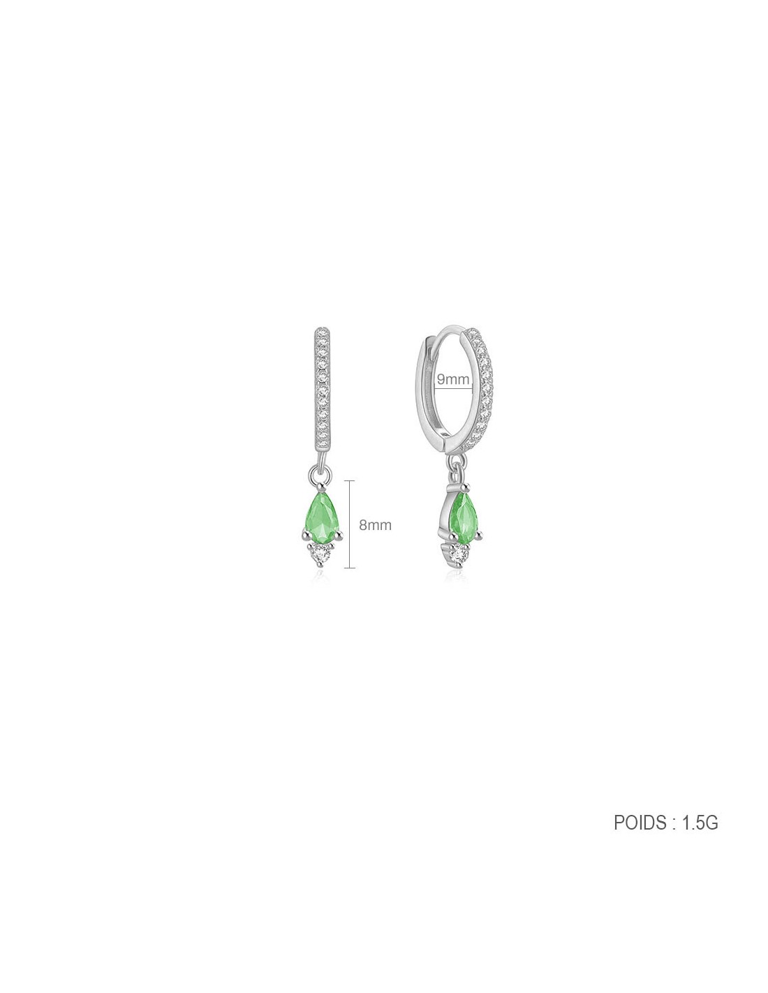 Boucles d'oreilles argent 925 - GOUTTE VERTE