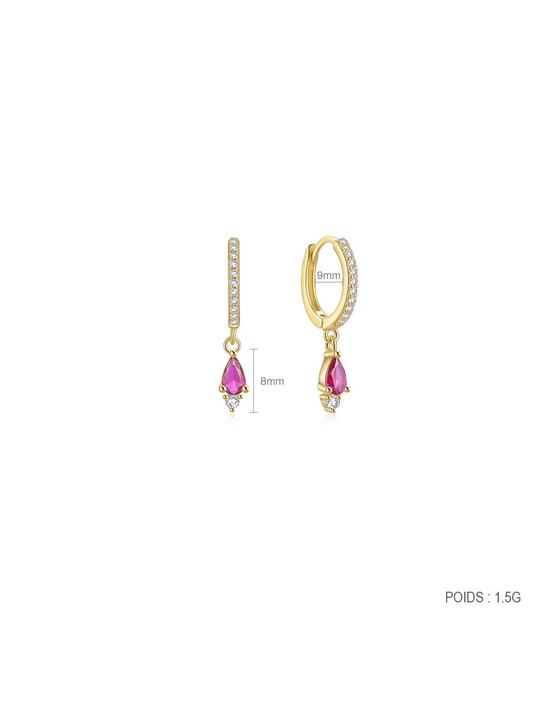Ces boucles d’oreilles en argent 925/000 doré à l'or fin séduisent par leur design délicat et contemporain. Deux créoles Ø9mm avec pampille goutte zirconium rose fuschia.