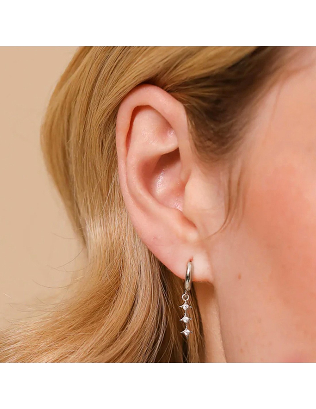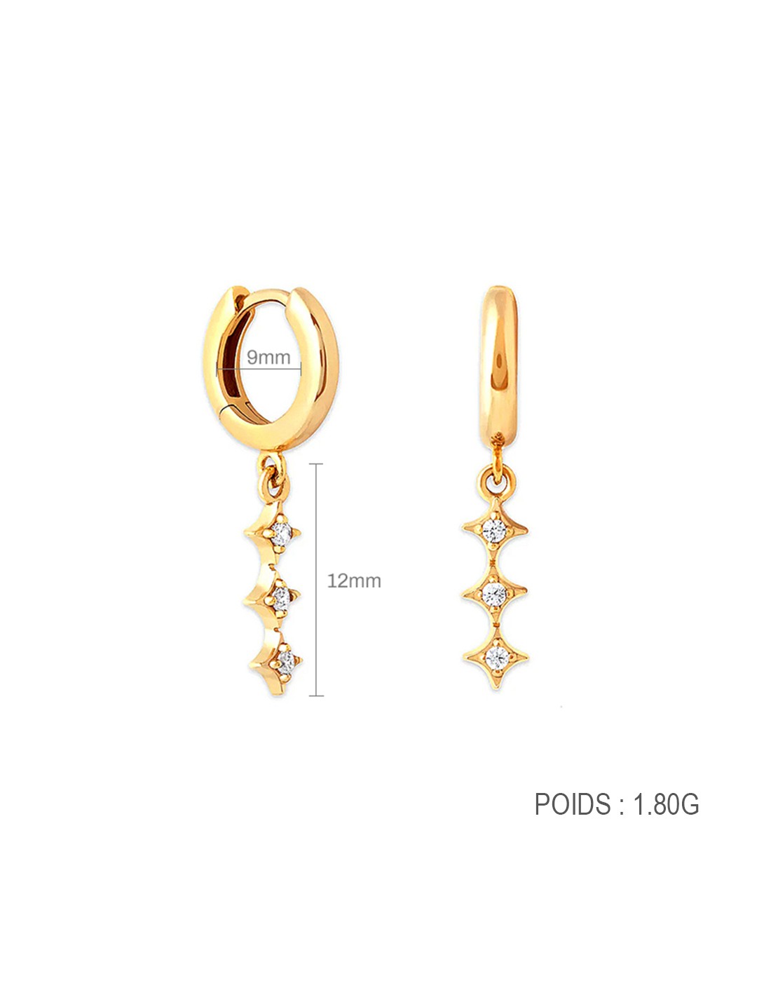 Ces boucles d’oreilles en argent 925/000 doré à l'or fin séduisent par leur design délicat et contemporain. Deux créoles Ø9mm avec trois losanges pendants.