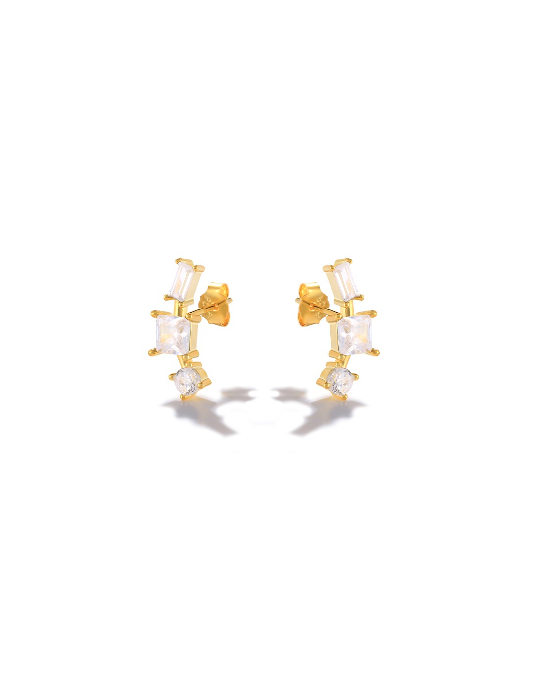 Ces boucles d’oreilles en argent 925/000 doré à l'or fin séduisent par leur design délicat et contemporain. Deux puces trio zirconiums.