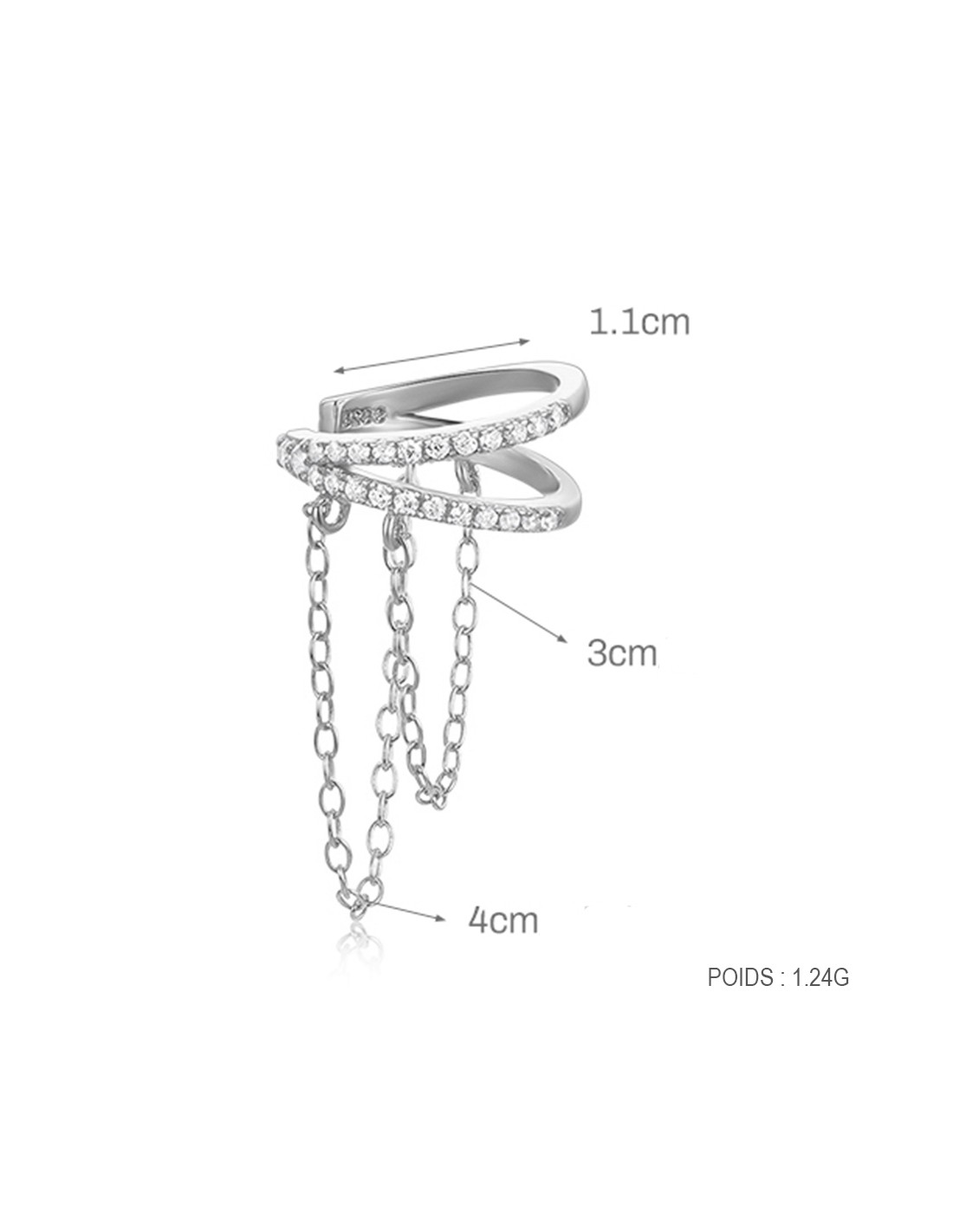 BAGUE OREILLE double anneaux et chaines - argent 925