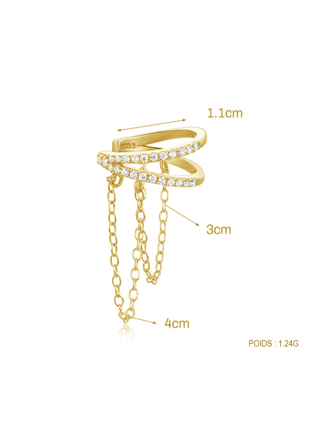 BAGUE OREILLE double anneaux et chaines - argent 925 doré à l'or fin
