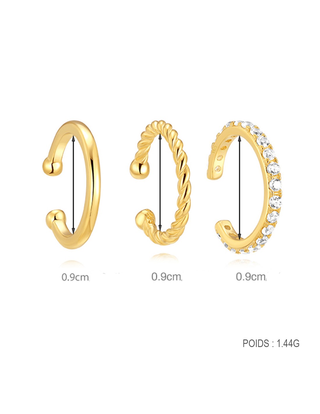 Cette bague d’oreille en argent 925/000 doré à l'or fin se porte sans perçage et se glisse facilement sur le cartilage pour créer un effet piercing conch/helix instantané. Une solution idéale pour les client(e)s souhaitant adopter la tendance du multi-perçage sans engagement et/ou pour finir un look.