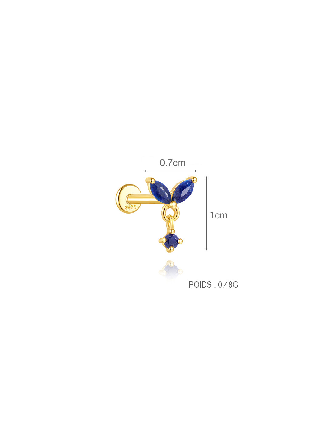 Labret 1.2x6mm en argent 925/000 doré à l'or fin.