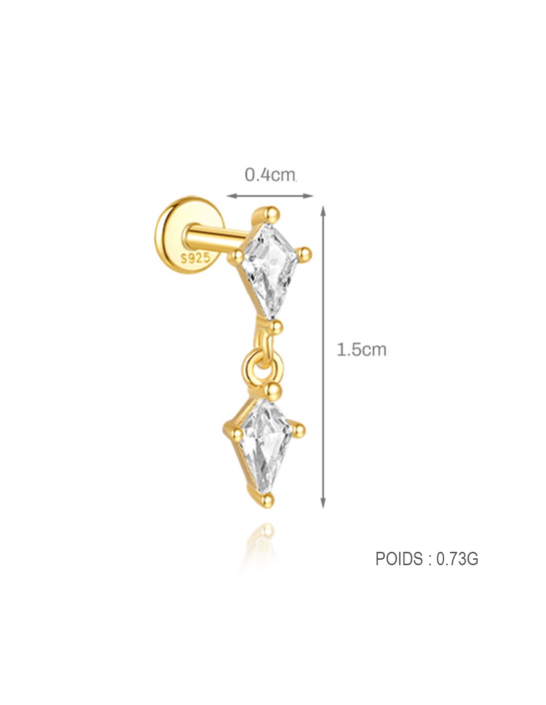Labret LOSANGE 1,2mm - argent 925 doré à l'or fin