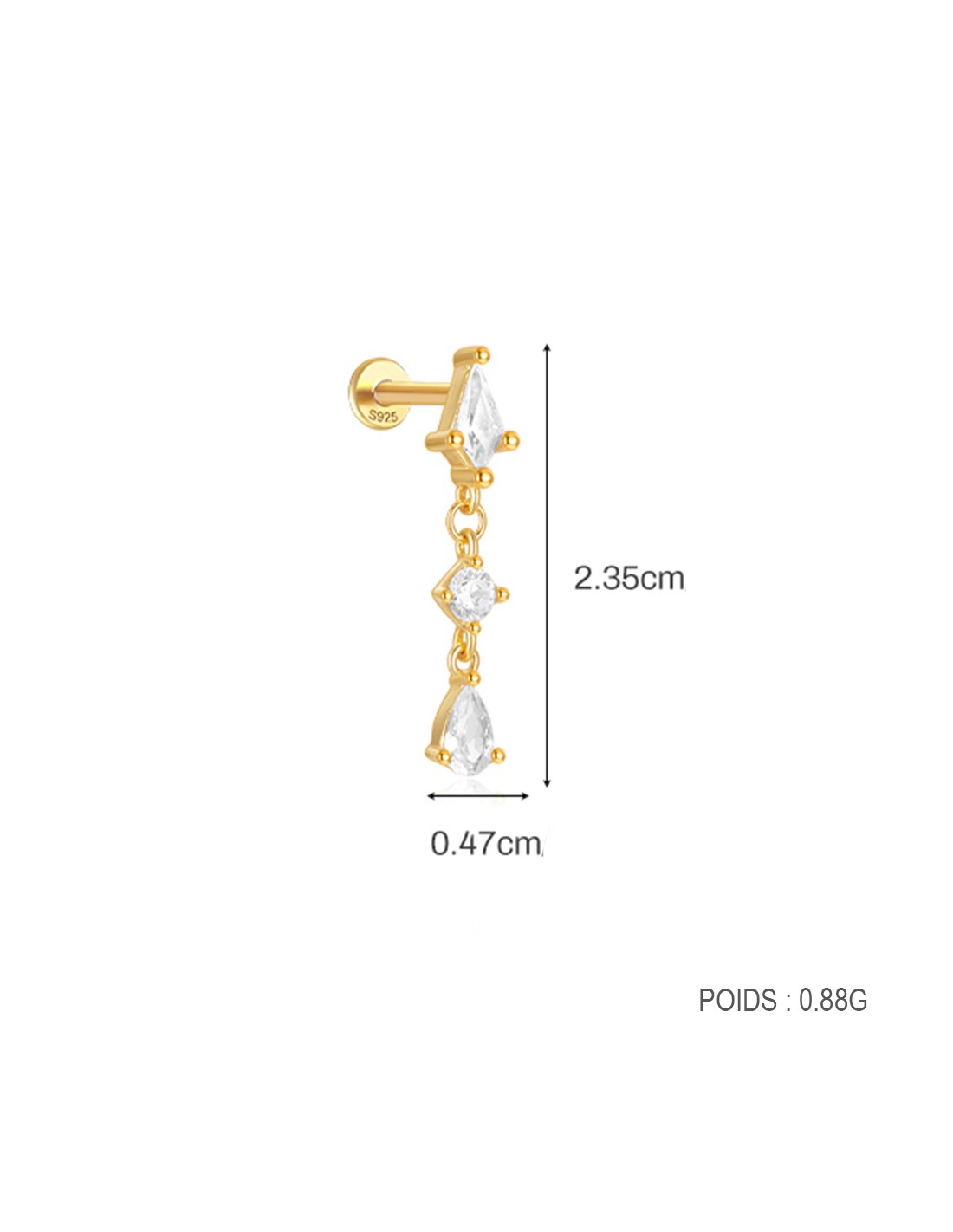 Labret LOSANGE PENDANT 1,2mm - argent 925 doré à l'or fin