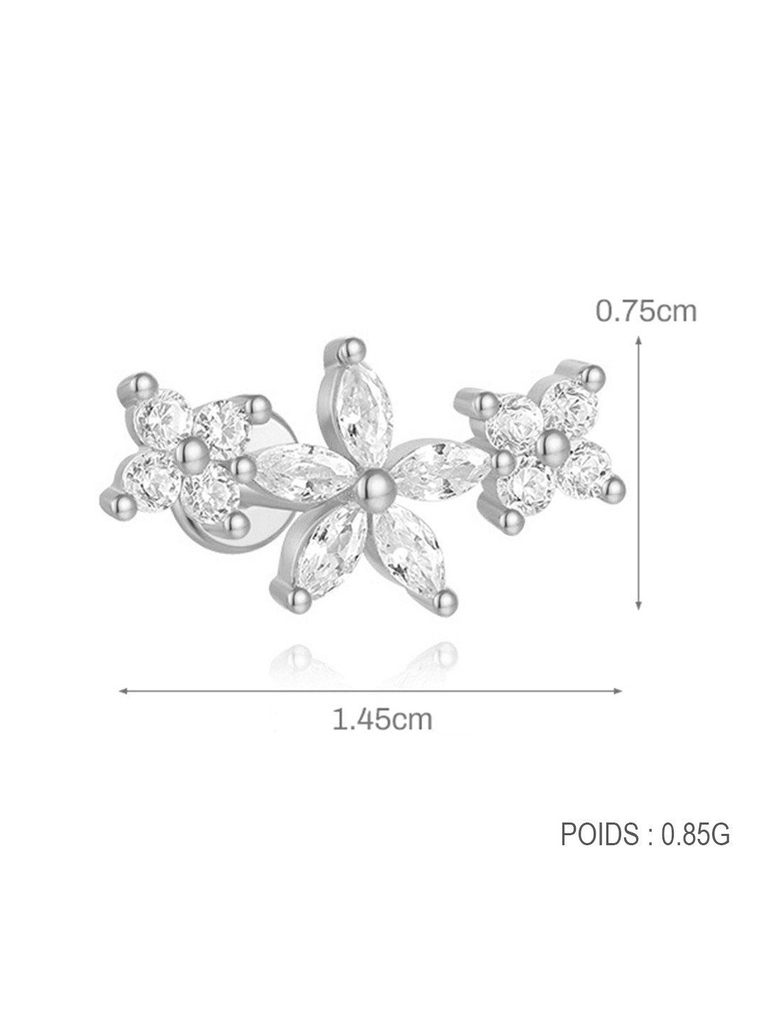 Labret 3 FLEURS CZ 1,2mm - argent 925